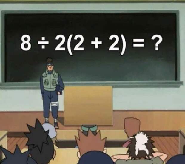 Как пояснила математик, правильный ответ — 16, поскольку по правилам сначала выполняется действие в скобках, а затем последовательно деление и умножение.