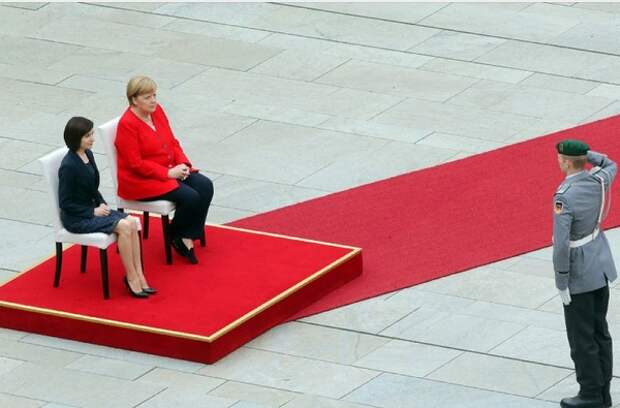 В Берлине во вторник прошла встреча канцлера Германии Ангелы Меркель и премьер-министра Молдавии Майи Санду. Журналисты обратили внимание на изменение протокола - канцлер прослушала национальные гимны сидя.