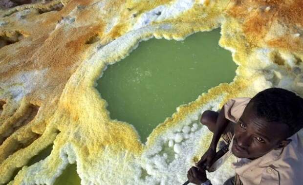 Геотермальный комплекс Даллол кажется очень ярким и красочным на расстоянии, но на самом деле это чрезвычайно опасная зона. По словам ученых, под поверхностью располагается вулкан, который испускает облака токсичного газа.