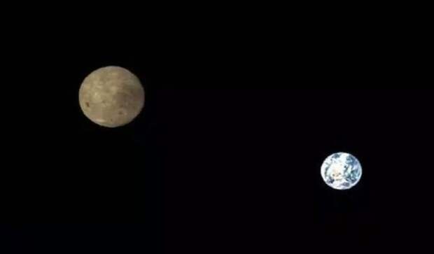 На одной из фото Луна и Земля запечатлены вместе, а ну другой можно увидеть естественный спутник нашей планеты вблизи.