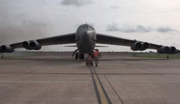 В Сети появилось видео, на котором ядерный бомбардировщик ВВС США B-52 Stratofortress заводит свои двигатели необычным способом - с помощью пороховых стартеров. Метод получил название Cart-Start.